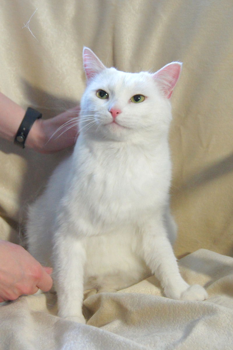 Он обладатель густой,мягкой белоснежной шубки и пронзительного кошачьего взгляда!Белый- котик с особенностями внешности, из-за перелома, у него удален хвостик, но это не делает его менее привлекательным котярой! Помимо обворожительной внешности, Белка -кот хороших манер - он очень умный,все понимает с первого раза,ночью спит, по утрам не будит с требованием покормить! Общительный, добрый и невероятно ласковый мальчик, любить посидеть на коленях и потереться мордочкой о руки человека!
