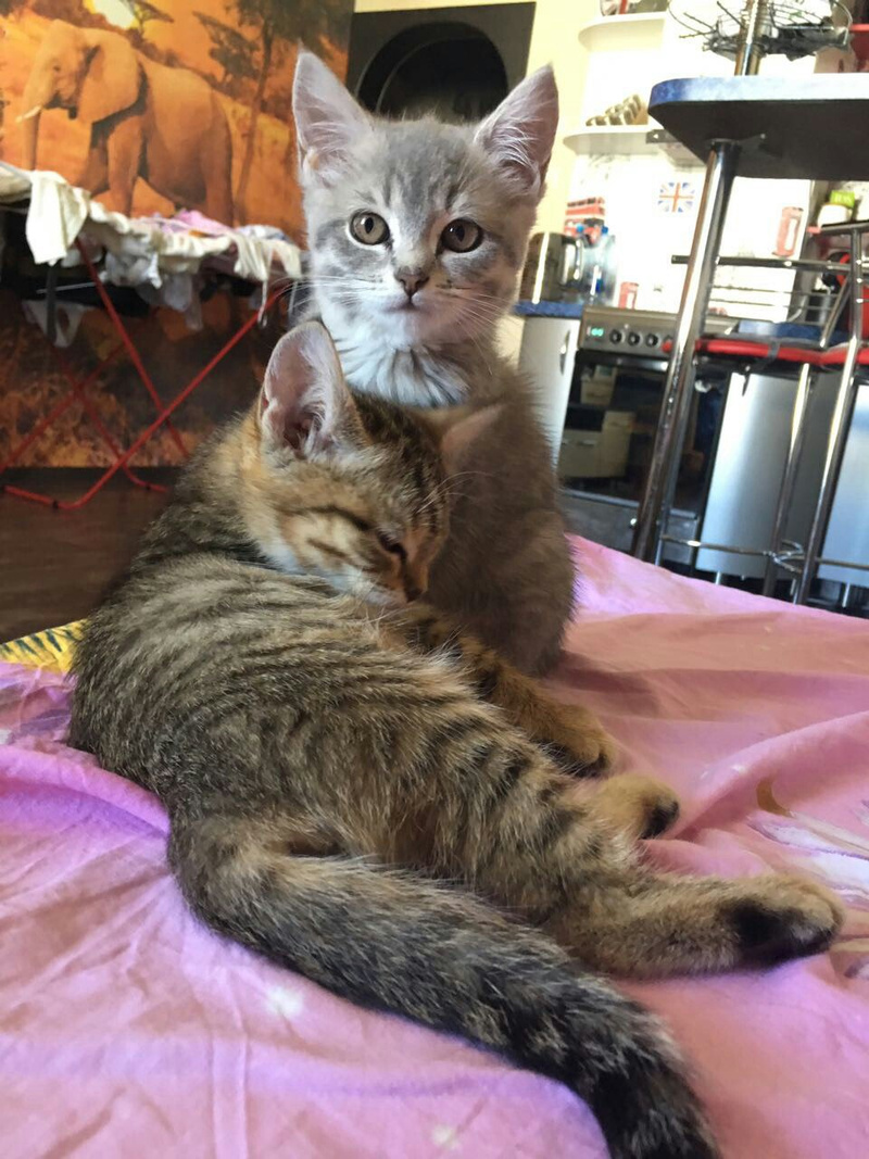 Итак, у нас две сестрёнки в красивейших полосатых шубках - одна девочка окраса "вискас", вторая - золотистая агути, похожая на маленькую рысь. Котятки необыкновенно чУдные - шустрые, весёлые, активные и жизнерадостные! Социализированы и общительны, ласковы как со взрослыми, так и с детьми. Обработаны от паразитов, по большим и малым важным делам ходят строго в лоточек) Наши девчонки, несомненно, вырастут роскошными уверенными в себе тигрицами (это уже сейчас видно по глазам), принесут любовь и радость своим новым достойным хозяевам!