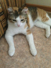 Возраст около 8 месяцев, изящно сложенная, грациозная кошечка. Мила была найдена в сильные морозы с отмороженными ушками, поэтому пришлось ампутировать их кончики. Девочка очень ласковая и нежная, замурчит и зацелует, всюду будет следовать за своим хозяином, показывая свое расположение, но при этом присутствует кошачий характер. Мила умная, очень сообразительная и активная, любит играть с игрушками мышками и мячиками. С другими кошками устанавливает свои правила: может гонять их, показывая, что она тут главная.