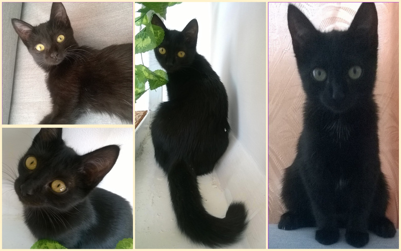 Отдается в добрые и ответственные руки чудесная кошечка. Черная (за исключением одного эпизода на брюшке), шелковистая мини-пантерка с шикарным хвостом и с золотистыми глазками. Ей примерно 3 месяца. И она очень умна, игрива и ласкова – будет вам замечательным компаньоном и антидепрессантом! С другими животными отлично ладит, к лотку приучена. Малышка пока откликается только на благородное «кис-киc», но мы дали ей кодовое имя Клёпа, чтобы вам было удобнее объяснять=)