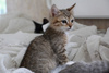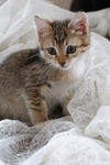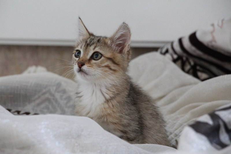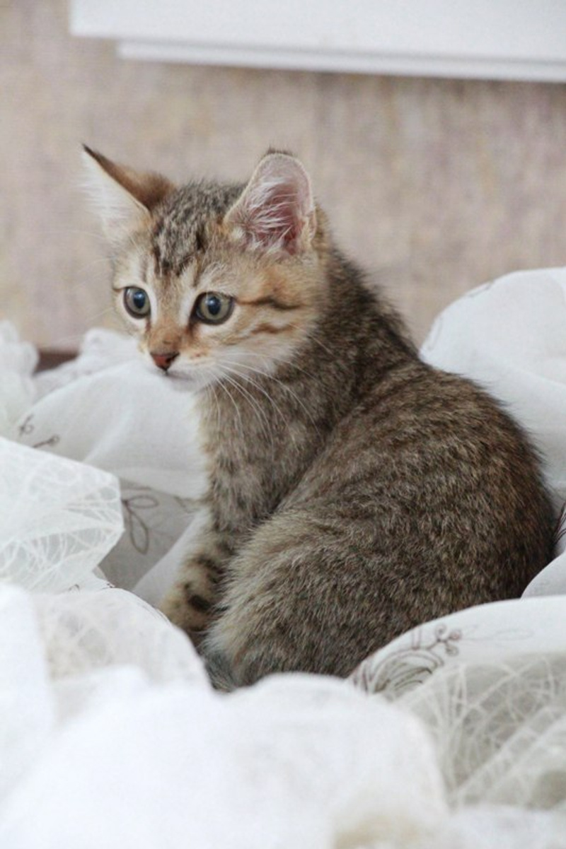 Возраст 2.5-3 мес. Пока стесняется, побаивается и осторожничает. Совсем недавно его и Гогу, его брата, забрали с улицы, где они родились .В квартире очень быстро адаптировался, привык и всему научился.