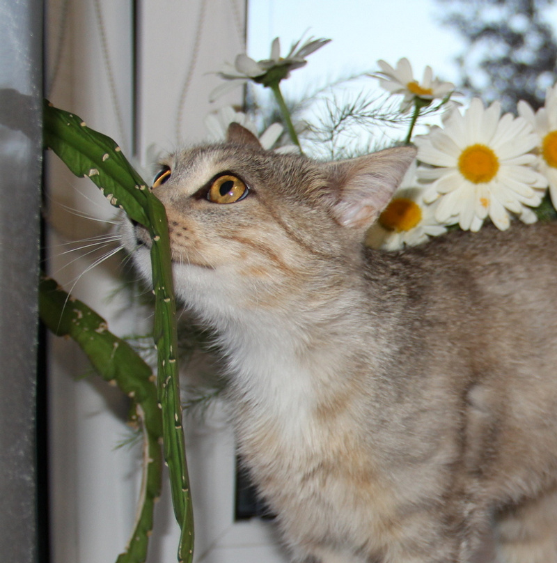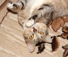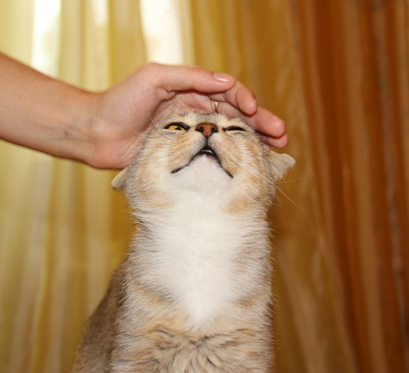 Кошечка невероятно ласковая, бодается, трётся мордочкой о руки, при этом не забывает мурчать песенку.
