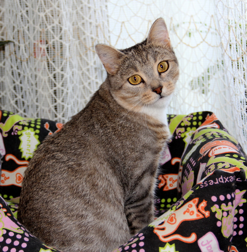Луша у нас стильная кошка: шубка серебряная тикированная, стройные ножки, точёная фигурка и хвостик крендельком))) Да-да, хвостик крендельком, потому Луша в тренде.