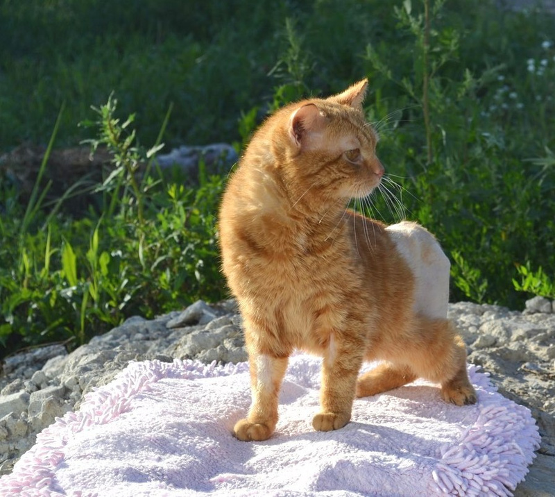 Рыжик - кот с непростой судьбой... его подобрала девушка, когда он полз по проезжей части дороги на передних лапках, а задние просто волочил за собой... Ему провели операцию по ампутации хвоста, провели лечение. Из-за множественных переломов таза, немного хромает, но ему это совсем не мешает жить своей полноценной кошачьей жизнью!