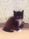 Три кошечки, 1,5 месяца. Две пушистых черно-белых малышки и одна чёрная гладкошерстная красавица.