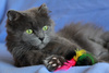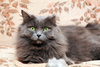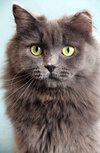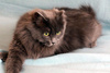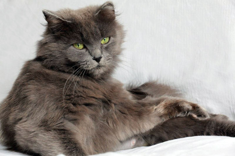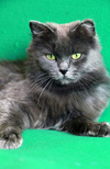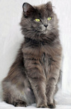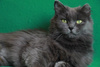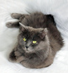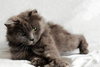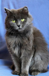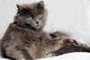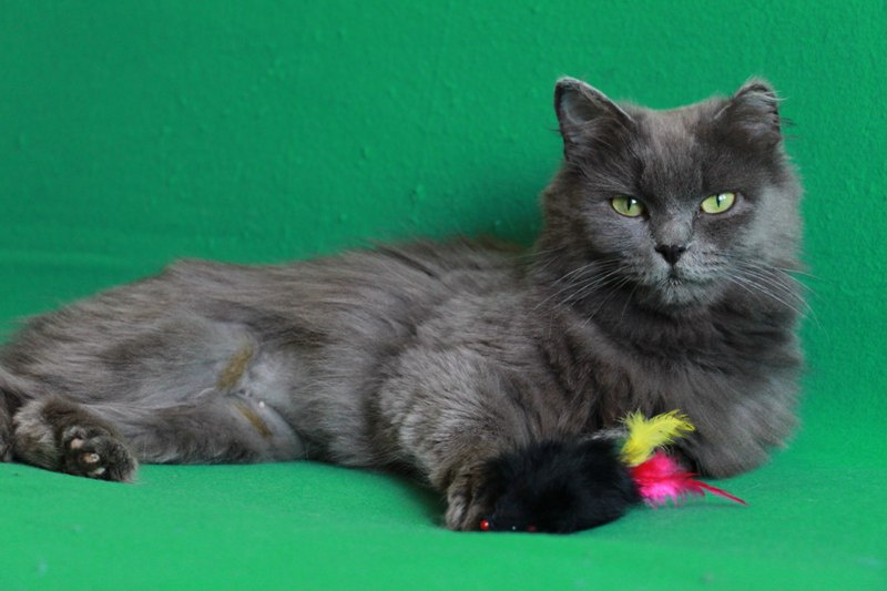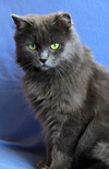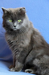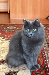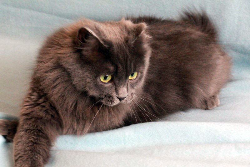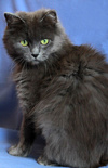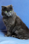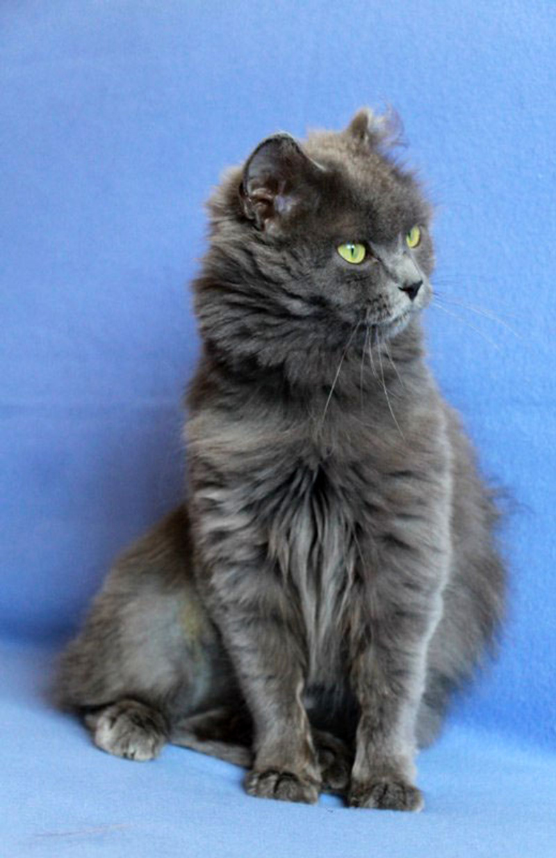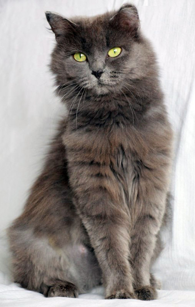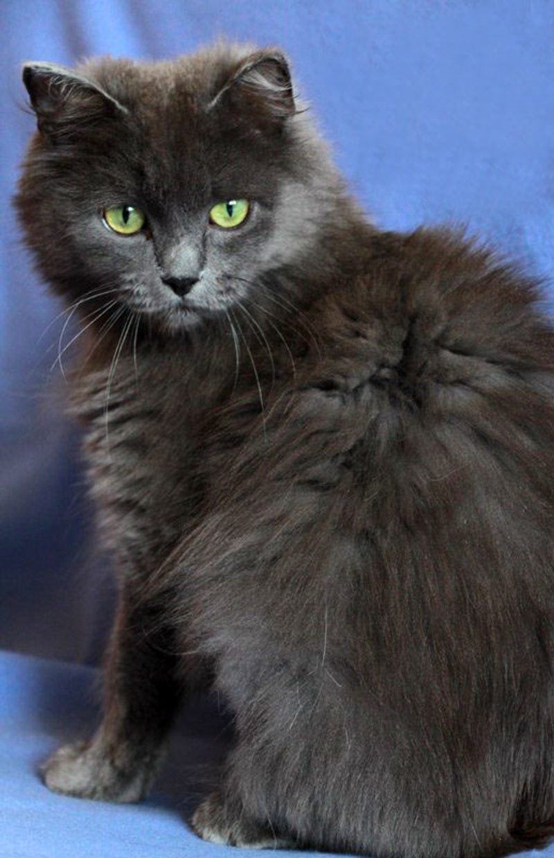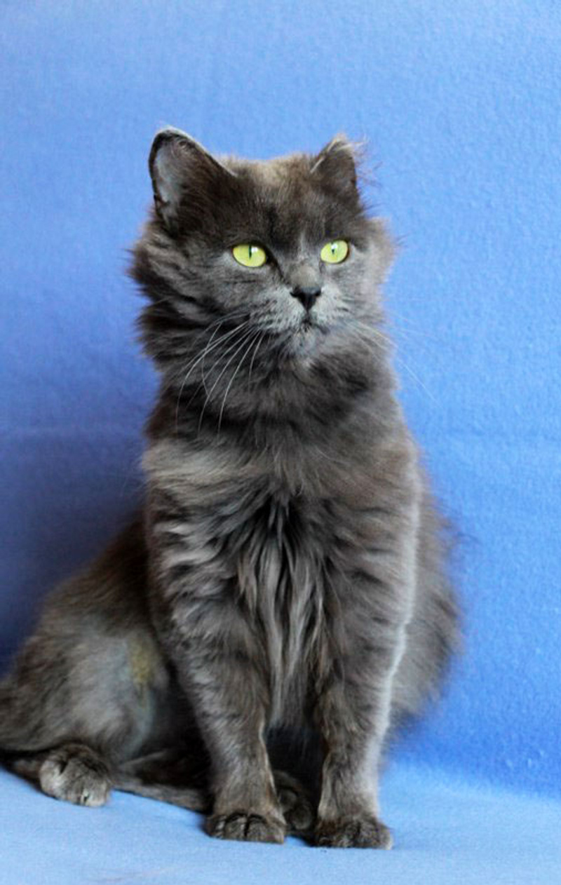 Возраст приблизительно 1-1.5 года. Голубая шубка с серебристым отливом требует постоянного ухода. Линда стерилизована, приучена к лотку с наполнителем, обработана от паразитов. Есть особенность-короткий заячий хвостик.