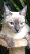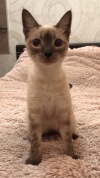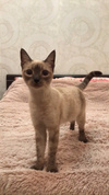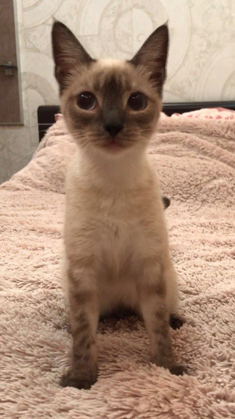 Изящная, длинноногая юная красавица Тая любого очарует и покорит своей незаурядной внешностью и серьезностью огромных голубых глаз. Как получилась такая милая кокетка – большой секрет плодильщиков и останется на их совести. Маленькой кошечке повезло не только с внешностью, характер у нее также незаурядный. Это положительная во всех отношениях умница, аккуратистка и ласкуша. Очень нежная и общительная девочка-компаньон. Прекрасно знает правила проживания в квартире, лоток на отлично, кушает кошачий корм. Игрива в меру. Возраст 7 месяцев. Уже стерилизована.