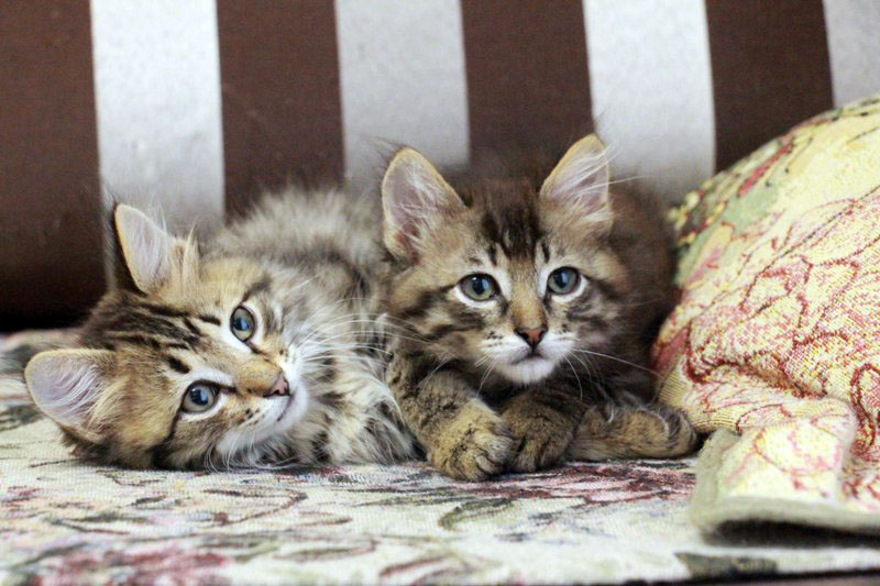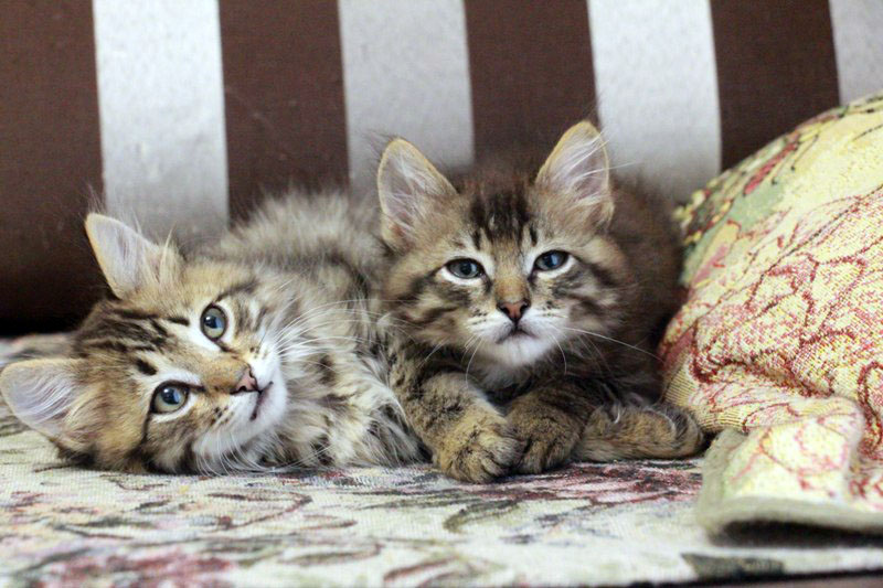 Малыши чудесные, очень похожи на сибирячков - природный окрас, кисточки на ушках, длинные усы, пушистые хвосты, шикарные штанишки,тихая походка, зоркий взгляд и отличная реакция! Очень добрые и ласковые дети. Любят играть с другими котятами,
