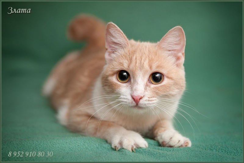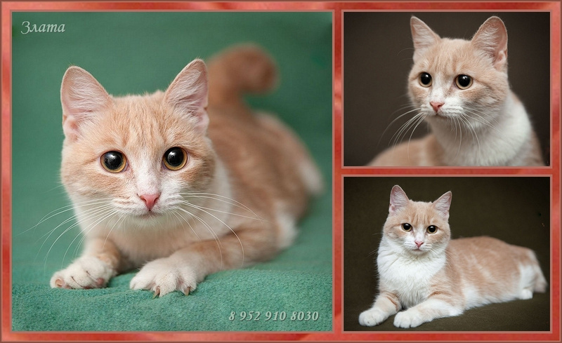 Имеет очень красивый персиковый окрас под мрамор, медового цвета глаза и укороченный хвостик от природы. Златочке около 10 месяцев, она отлично ладит со своими кошачьими сородичами ♥ Привита и стерилизована.Злата пристраивается только в квартиру в черте города, с условием в дальнейшем ненавязчиво интересоваться её судьбой.