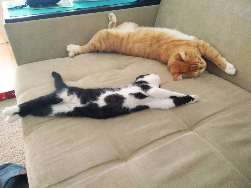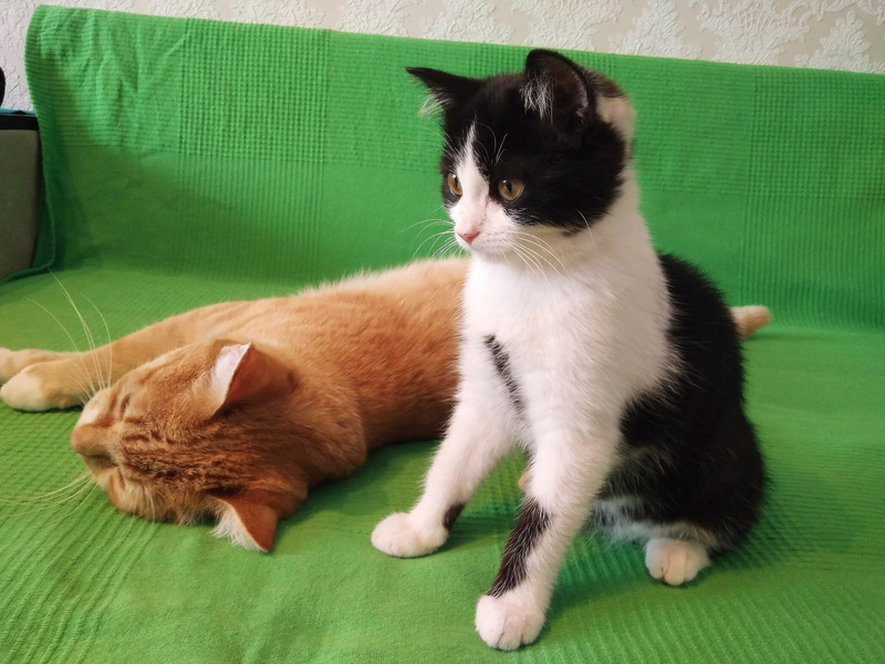 Подружилась с нашим котом, они часто играются и спят вместе!