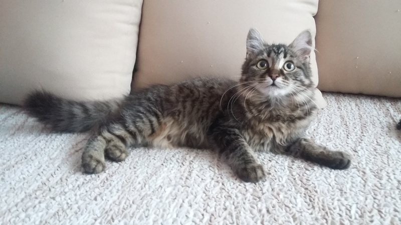 Девчуля,месяца 3,5-4,невероятно ласковая,тарахтелка работает на 5+, в горшочек пошла сразу. Я в первый раз такое вижу-лижет руки,как собака
