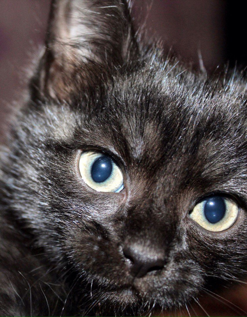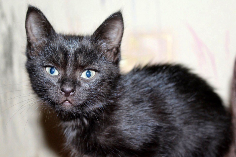 Наоми - игривая черная красавица. Неутомимый исследователь: залезает во все уголки, проверяет цветочные горшки, бегает и прыгает с домашней собачкой и кошкой) После чего, найдя титю у последней, сладко засыпает под её бочком, чтобы набраться сил к следующему заходу))