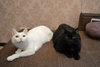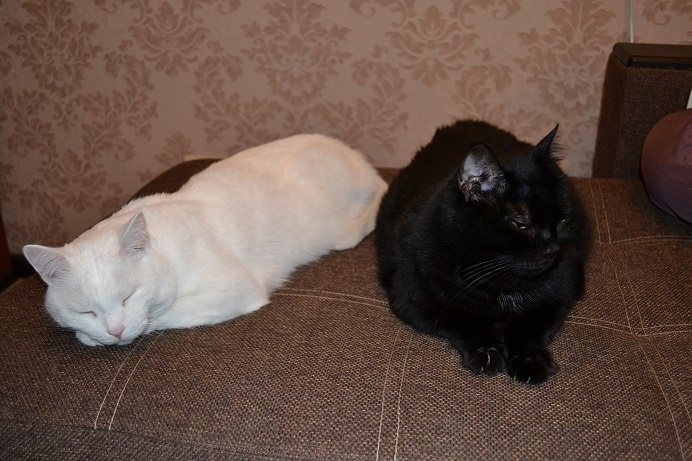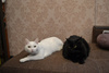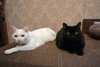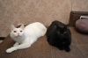 Белый - Тимоша, около 9 лет, кастрирован, очень общительный, очень любит лежать на коленях, любит, чтобы его гладили по голове, очень любопытный.
