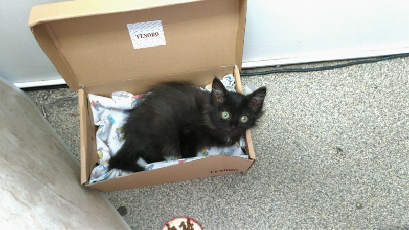 Котенка полу женского, нраву изумительного, возраст 2.5-3 месяца, худысенькая, волосатенькая, аж в ушах мех. Тихая, нежная, ласковая, воспитания благородного. В горшок ходит, котячий влажник ест. От блох-глистов на первый раз обработали. Сидит в офисе в отгороженном углу, т.е. совершенно без контакта с другими животными. Глаза-нос-уши чистые, стул прекрасный. Будет очень красивая и меховая, окрас черный дым (т.е. подшерсток светлый, покровный волос черный).