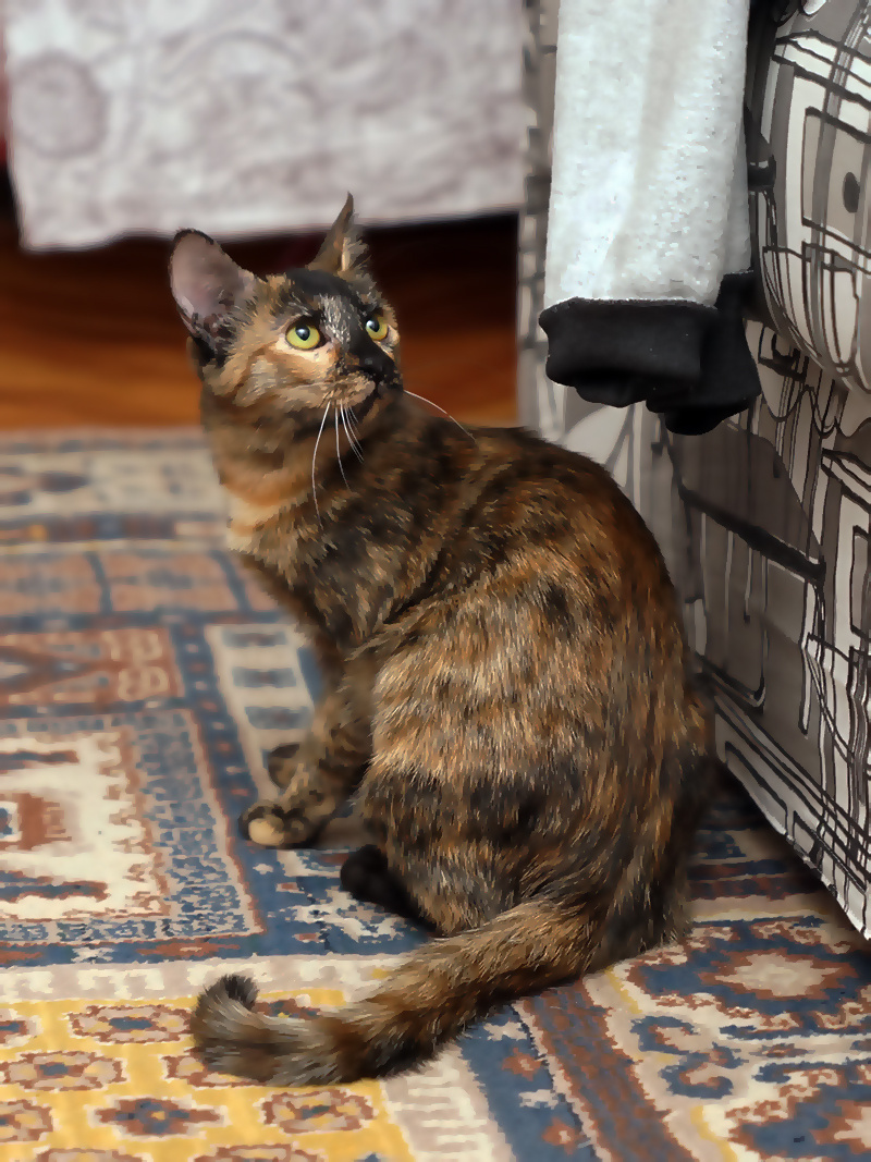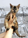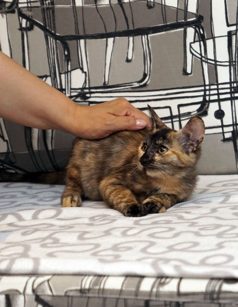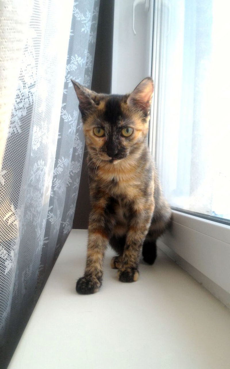В нарядной, яркой шубке с осенними мотивами, вся утонченная, нежная, хрупкая. Это отдельно взятая уникальная личность, уже проявляется индивидуальность. Ксюша очень добрая, любит всех вокруг, активная, прыгучая, ловкая. Очень ждем ответственных хозяев для малышки, которые обеспечат ей беззаботную кошачью жизнь. Обязательное условие -стерилизация по достижении половозрелого возраста. Обработана от паразитов, приучена к лотку.