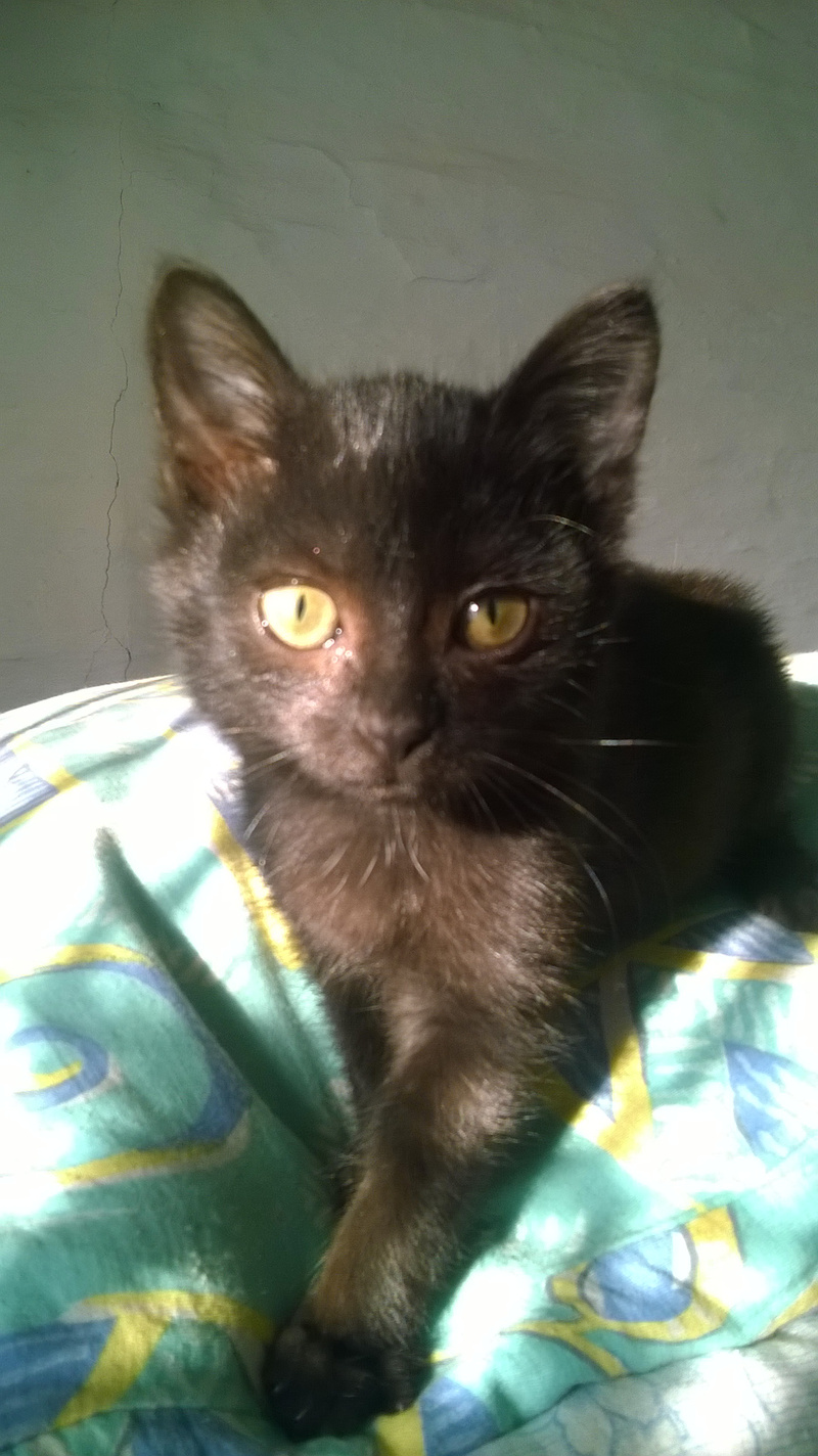 Одну из них оставили еще слепышиком. Удалось ее выходить и теперь это веселый, любознательный котенок.