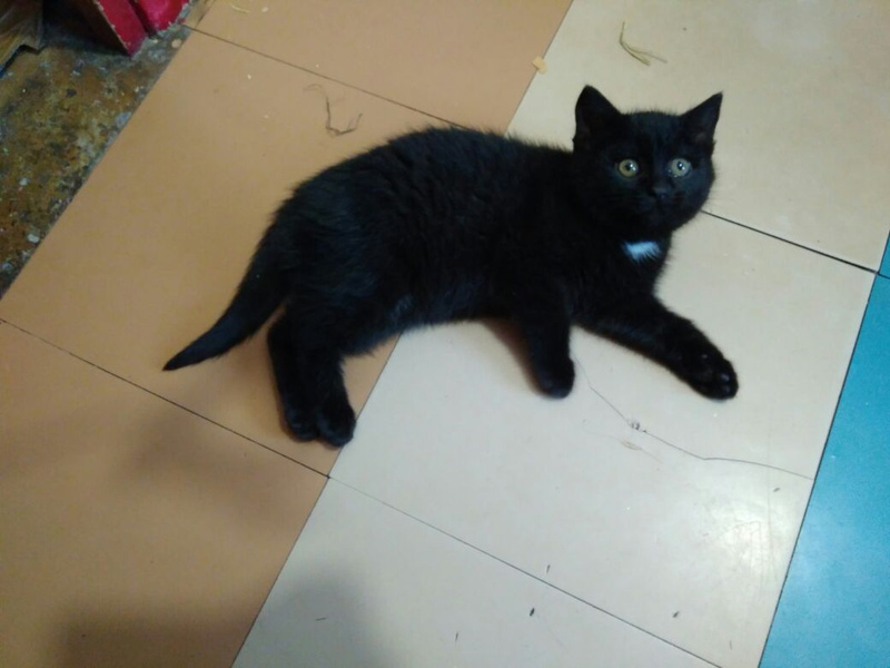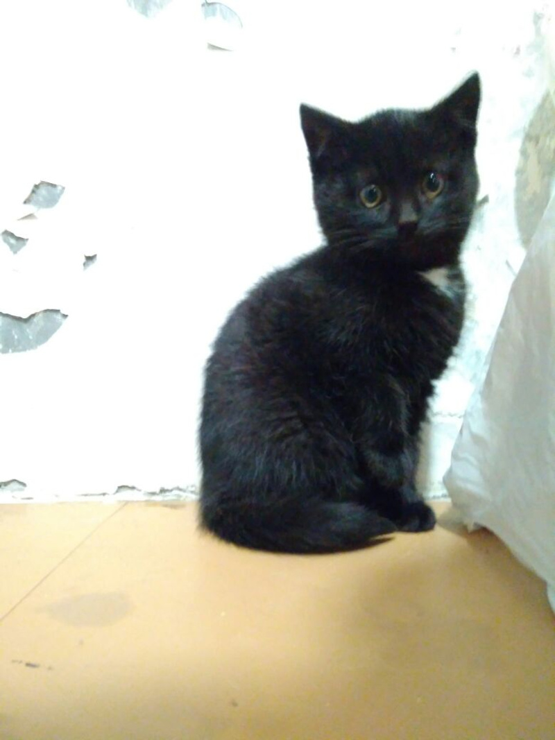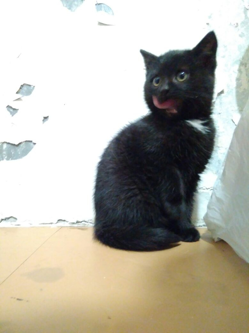 Маленький котеночек ищет свою семью! Красивый черный мальчик с белым галстучком и ярко зелеными глазами. Совсем малыш, возраст примерно 3 месяца. Любопытный, игривый и ласковый. Кушает все, что дадут, ходит на лоточек. Прошел обследование у ветеринара, здоров.