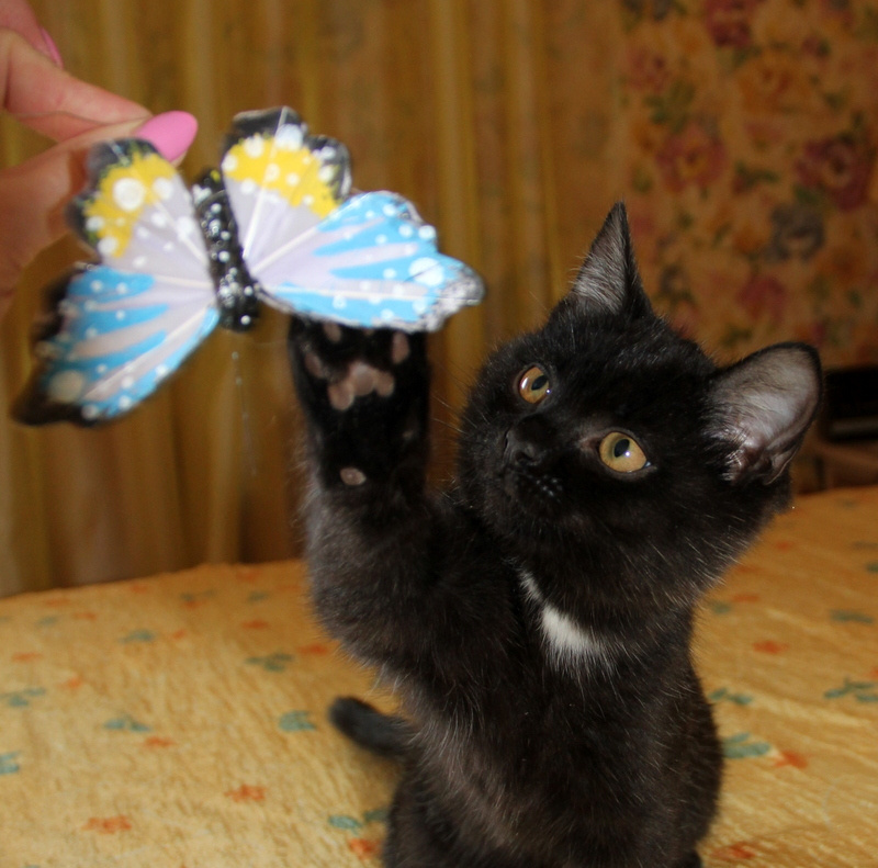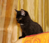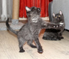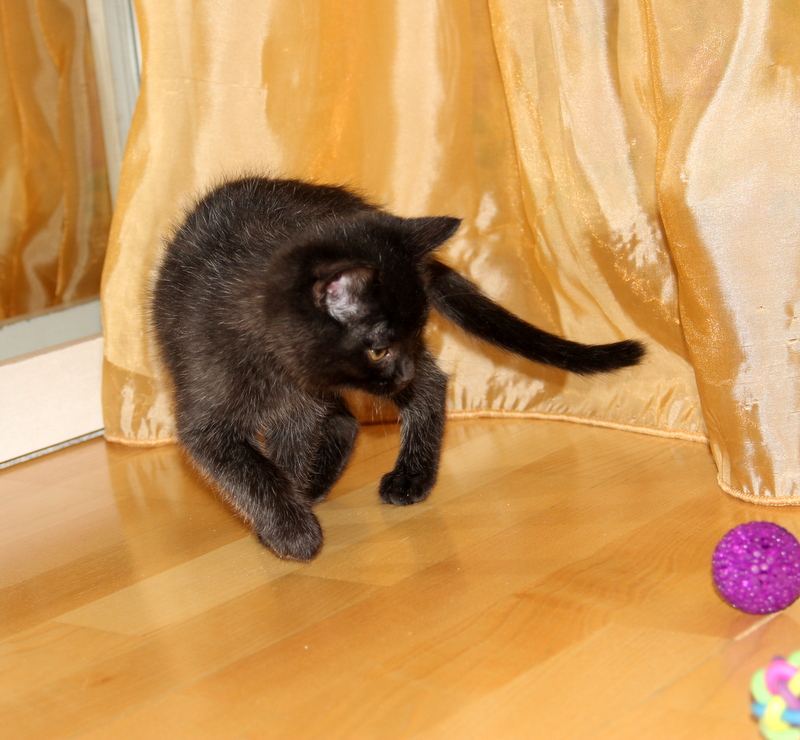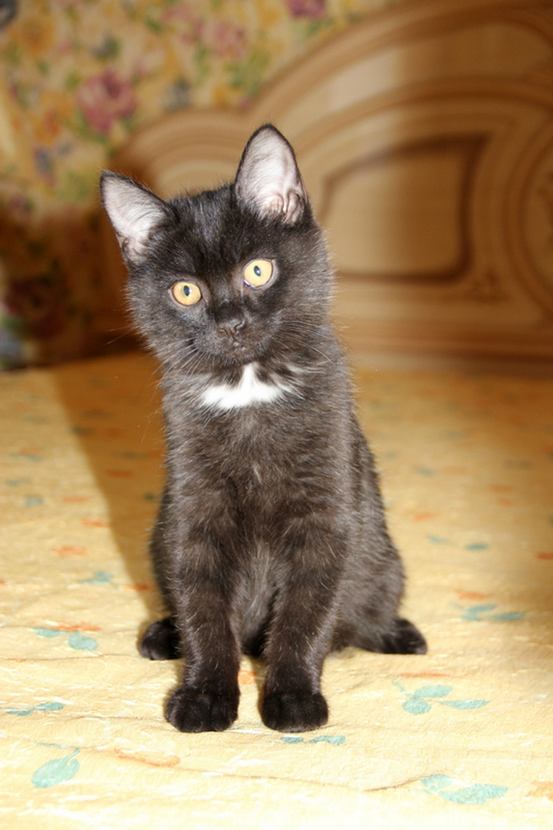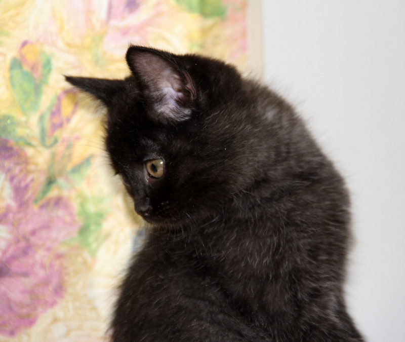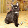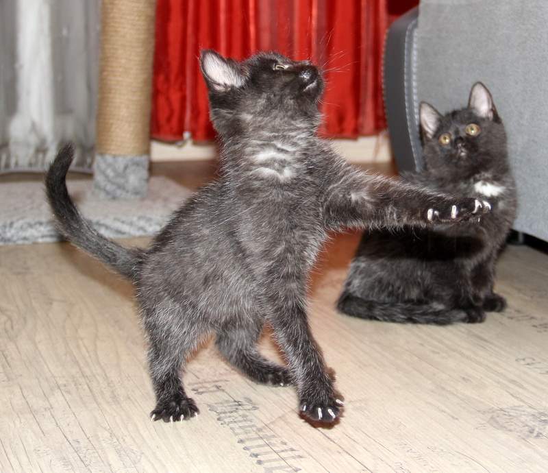 Один котёнок полностью чёрненький с серебристыми волосками по спинке.