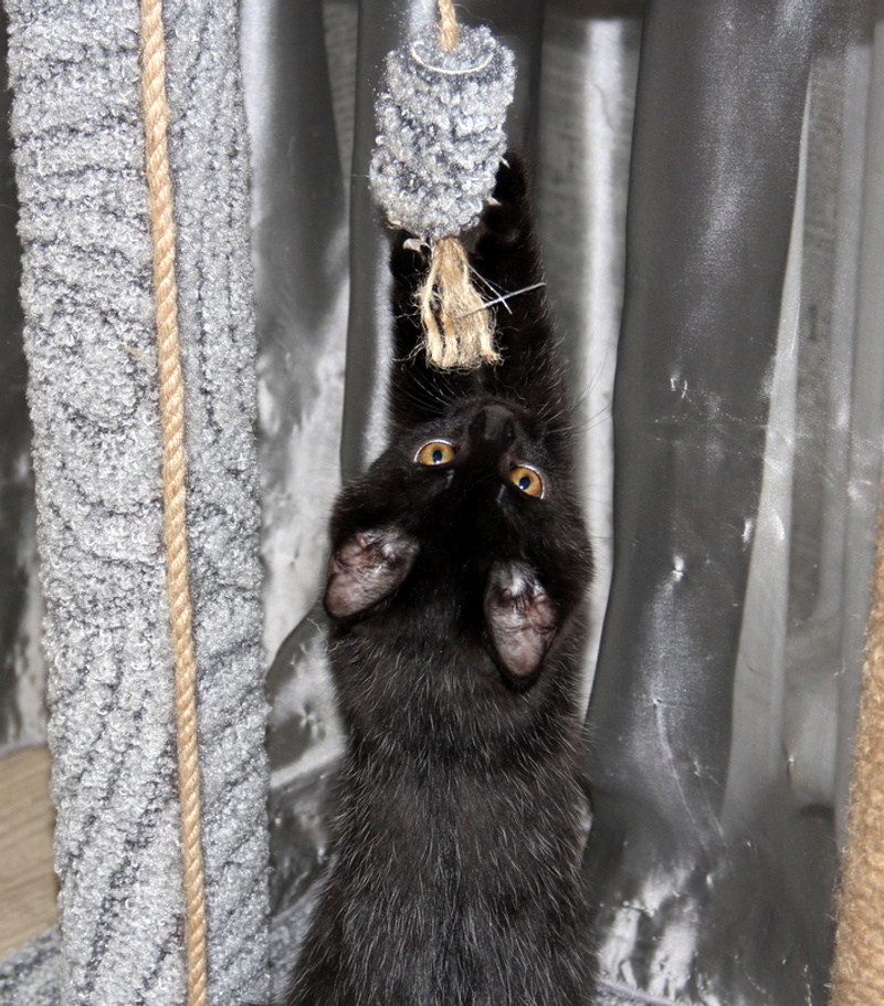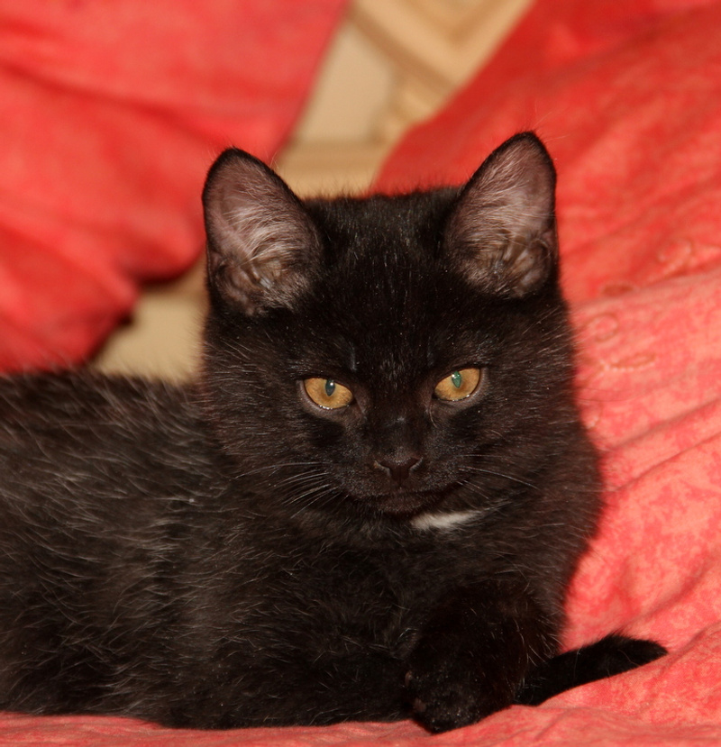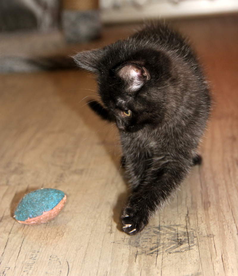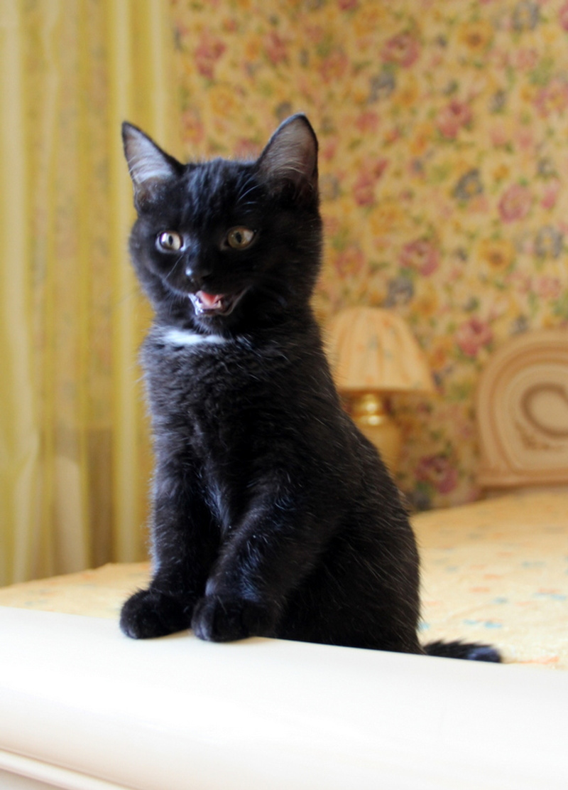 Один котёнок полностью чёрненький с серебристыми волосками по спинке.