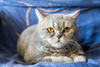 Отдам в добрые руки некрупную молодую кошечку помесь британки.