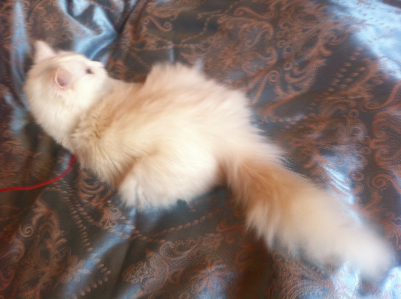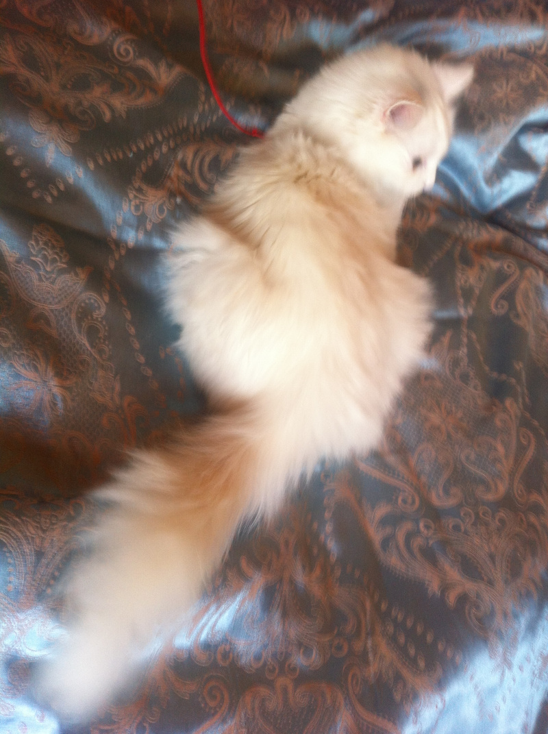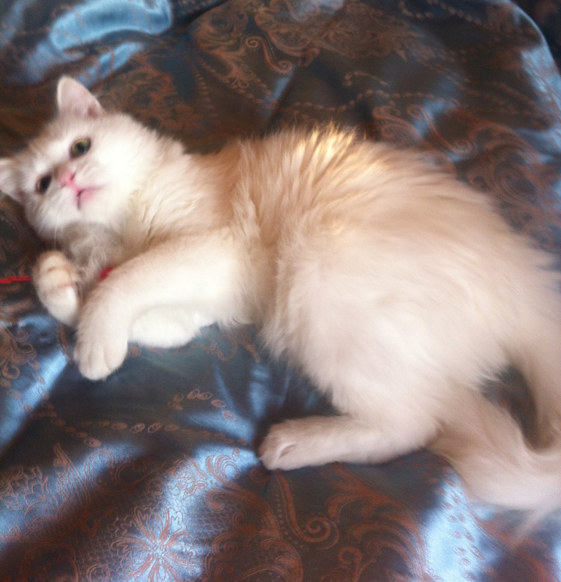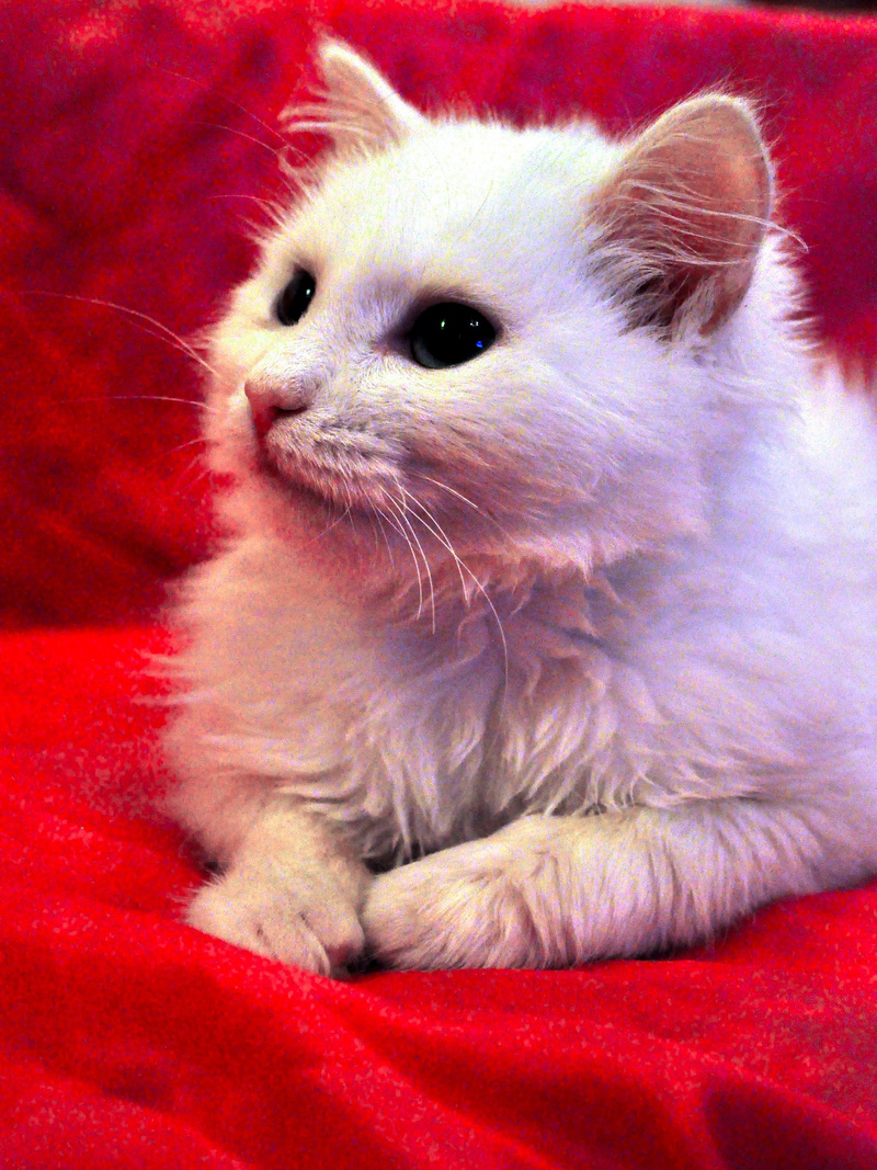 Сейчас она от'елась, у неё начала пушиться белоснежная шелковая шерстка, она ходит только в лоток и обожает мурчать, сидя на руках.
