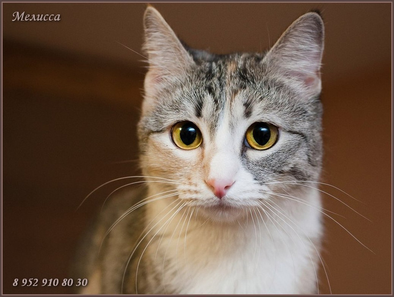Пристраивается только в квартиру в черте города, с условием в дальнейшем ненавязчиво интересоваться её судьбой. Для знакомства с Мелиссой, звоните: 8-952-910-80-30 Наталья (огромная просьба не звонить позднее 22:00)