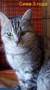Это кошечка Сима, ей 3 года, она стерилизована, отлично знает лоток и когтеточку.