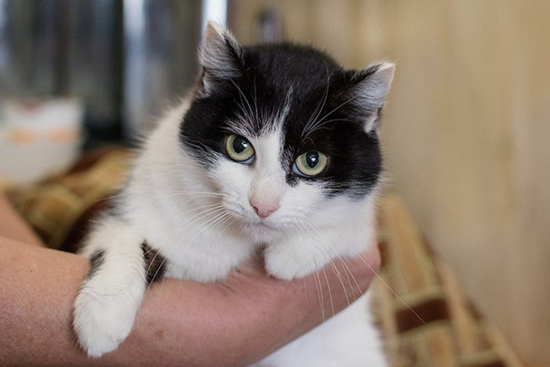 Классический черно-белый окрас не оставит вас равнодушным, зелёные глаза смотрят прямо в ваше доброе сердце и просят взять эту очаровательную кошечку себе.