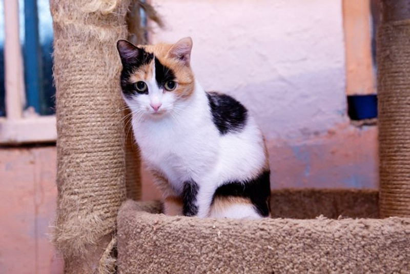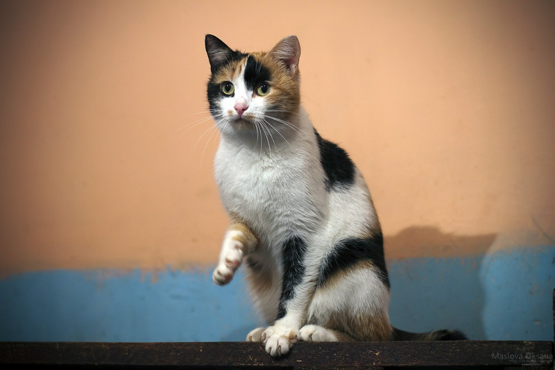 Маленькая, стройная котодевочка Анка в шубке яркой расцветки.