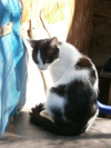 на спинке пятна расположились так будто кошка обнимает кошку,