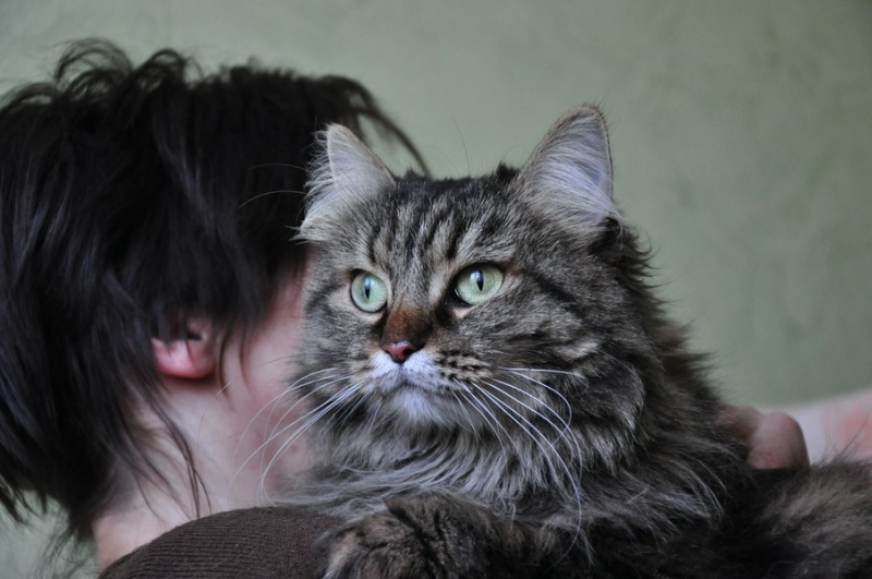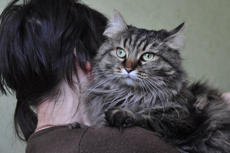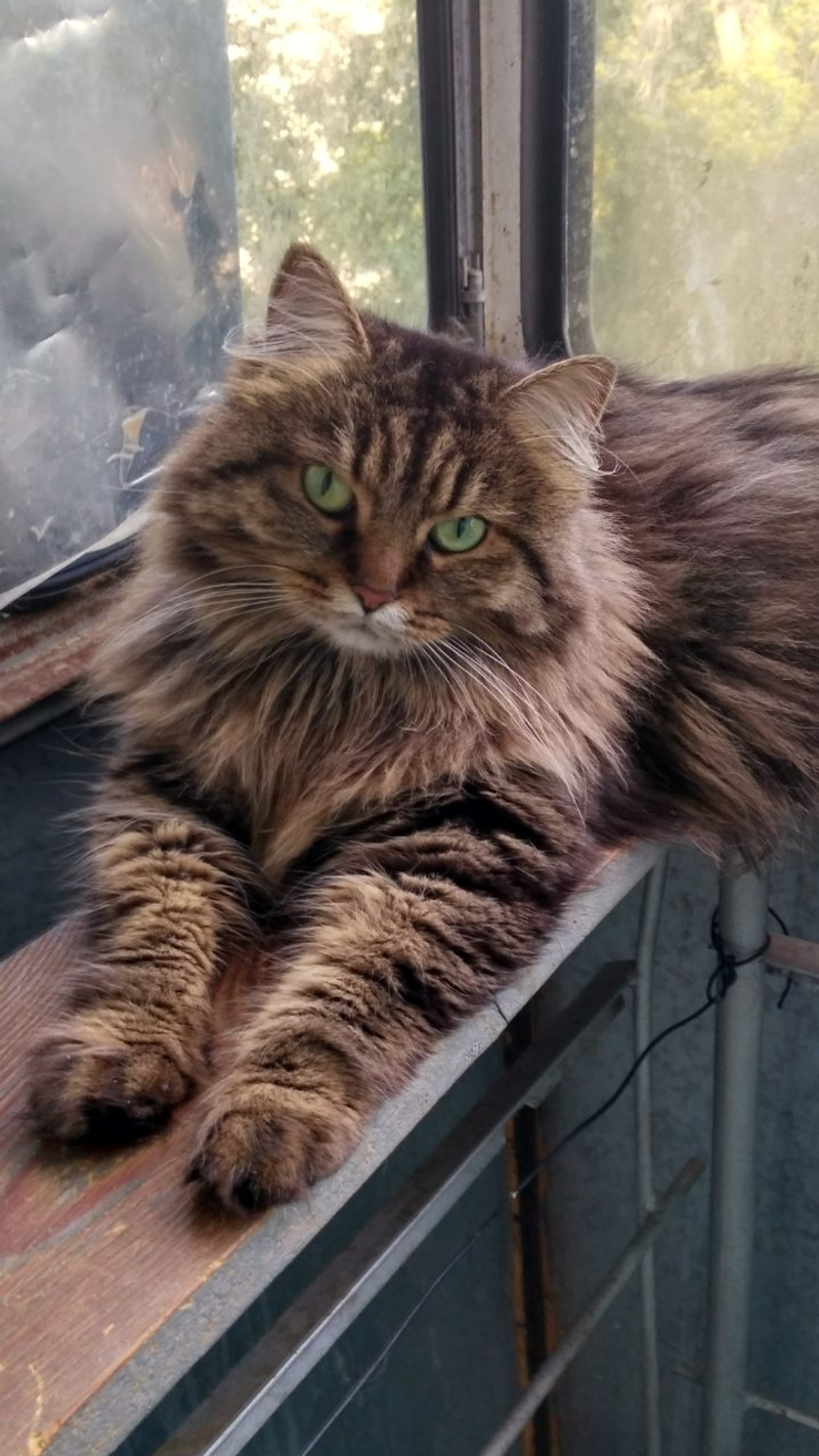 Матильда - кошка полосатого окраса с длинной шерстью и невероятным глазами - цвет глаз Матильды меняется в зависимости от настроения и освещения с зеленого на желтый и обратно. Ласковая, добрая, умная. Лоток на 5, стерильна, здорова. Точный возраст неизвестен, но кошка молодая (1-2 года).