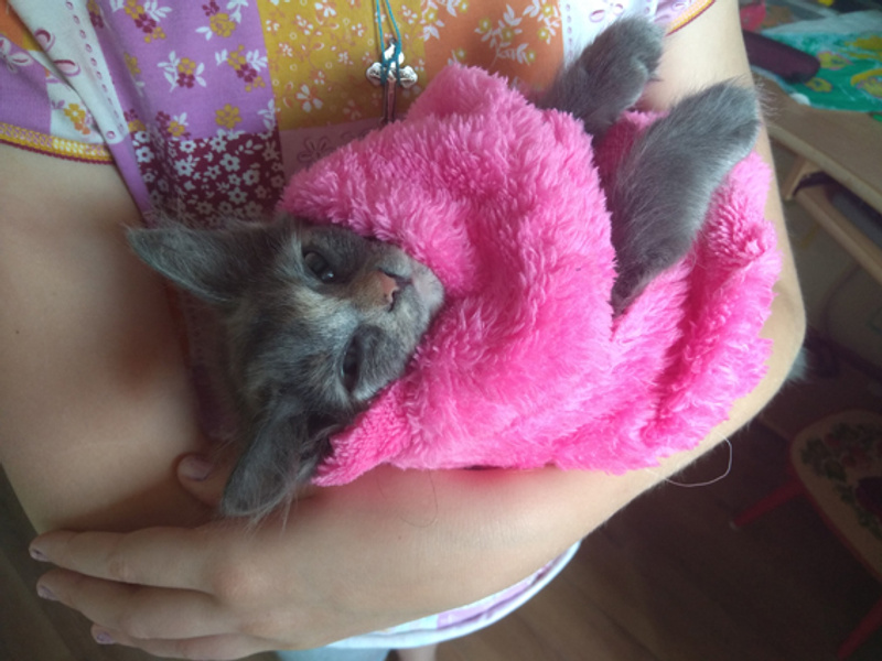 Дочка подобрала эту явно домашнюю малышку 3 дня назад в коробке на улице. Я сама в окно видела, что коробку таскали дети у нас во дворе, но не видела, кто именно в коробке... В общем, дети ее там же на улице и оставили.