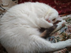 Знакомьтесь, эта скромная девочка с теплым взором должна стать Вашей. Молодая кошечка в возрасте 3х лет, спокойная, добрая и ласковая. Благородный белый цвет холеной шубки , небольшие кокетливые рыжие и серые пятнышки и просто невероятные медовые глаза! Белочка непременно станет украшением Вашего дома и хранительницей очага. По характеру нежная и привязчивая, очень человеческая кошка. Белочка воспитана и аккуратна, ходит строго в лоток с наполнителем. Кушает качественный сухой корм, любит влажники. Стерилизована.