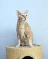 Красавец корниш Ниша, полное имя Ницше, ему 12 лет и он совершенно слепой, что никогда не скажешь, глядя в эти чистые, прозрачные зеленые глаза. Ориентируется хорошо в пространстве, свободно перемешается по квартире, запрыгивает на свой любимый стульчик, спит и нежится на солнышке. Красивый, взрослый кот со сложившимся характером и устоем, темпераментный, громкоголосый, эмоциональный. Очень скучает дома один, любит общение, ласковый. Кастрирован, привит, обработан от всех паразитов. Питается Хиллсом, приучен к лотку с наполнителем, пьет воду из ведра.