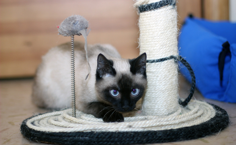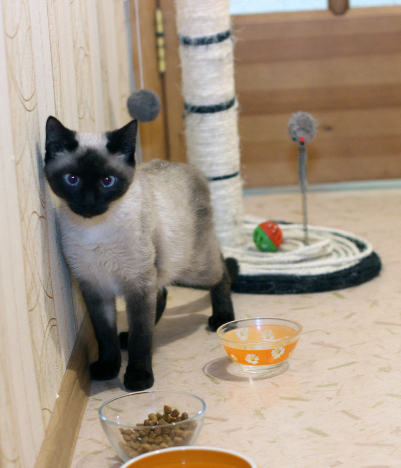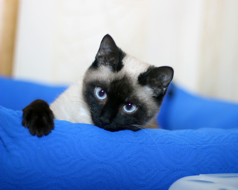 Воспитанный молодой голубоглазый котик тайского окарса ищет дом.