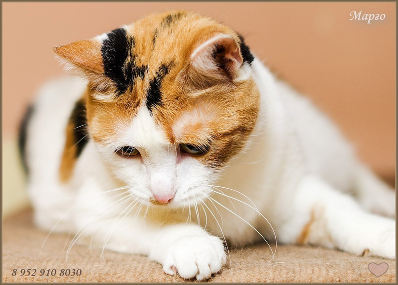 Марго - умная, воспитанная кошечка, лоток на 5+, стерилизована и привита.Маргаритка пристраивается в квартиру в черте города, с условием в дальнейшем ненавязчиво интересоваться её счастливой судьбой