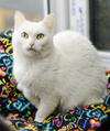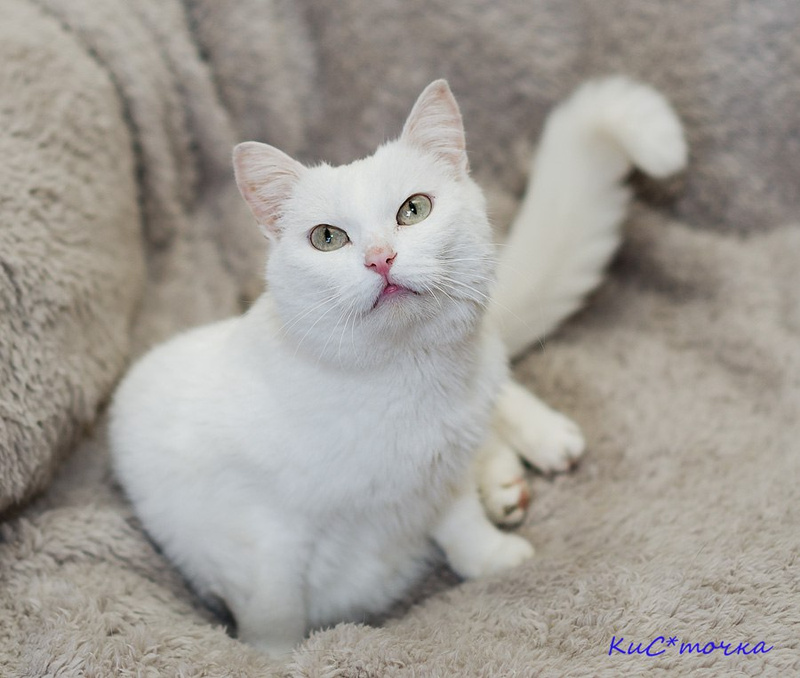 А зовут её Муха)) Мушка нежная, невероятно ласковая, игривая, она полностью растворяется в человеческом внимании, она идеальная домашняя кошечка! Стерилизована, знает лоток и когтеточку, спокойно относится к другим кошкам. Мушка глухая, как многие белые кошки, но это совершенно не доставляет проблем ни ей, ни хозяевам. Просто она прибежит не на кис-кис, а на лёгкое постукивание ногтями по полу.