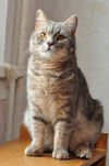 Альту около 2 лет, это молодой здоровый котейка в отличной физической форме. Ведет себя обособленно, предпочитая общению с человеком упоительный сон в красивых позах или активные игры с лазерной указкой и мячиками. Альт умен и уверен в себе. Точно знает, чего хочет от жизни. Очень любит открывать двери, дверки и створки окон (поэтому нужны будут сетки на окнах, чтобы Альт не решил внезапно уйти). Имеет задатки охотника. Вообще Альт больше похож по характеру и повадкам на настоящего дикого кота. И условия ему нужны соответствующие - без маленьких детей, без других животных, вероятно пристройство в коттедж или квартиру.