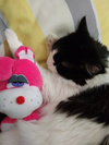 В очень надежные руки пристраивается 10 месячный кот Тимофей. Кастрирован, к лотку приучен (ходит в наполнитель), разговорчивый, очень хорошо ладит с другими животными, ласковый и нежный котенок, постоянно нуждается в человеке, ходит хвостиком. Так же обожает валяться в подушках, вместе со своей игрушкой, которую он везде за собой таскает. Игривый и ласковый мальчуган.