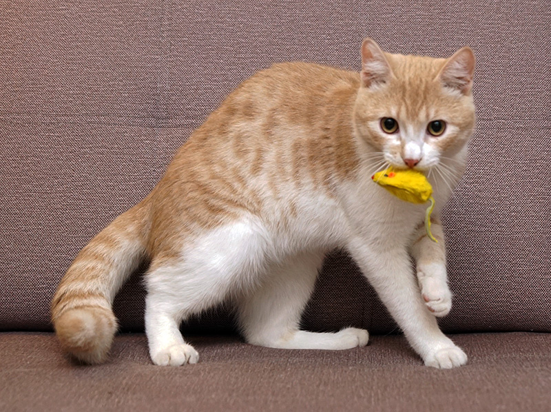 Хороший, дружелюбный, взрослых котов не обижает, но в обиду себя не даст, умеет защищаться, начинает выгибать спинку и скачет боком:), все сразу «боятся» и принимают решение не связываться. Очень любит покушать, всегда первый бежит на кухню. Приучен к лотку с наполнителем, обработан от паразитов, проглистогонен, скоро первая прививка. Отдается под кастрацию по достижении половозрелого возраста, все рекомендации по содержанию и кормлению дадим.