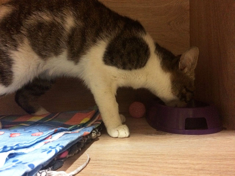 Сейчас кот Тимофей находится в вет. клинике, в стационаре, восстанавливается после кастрации и проходит карантин.