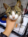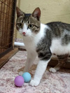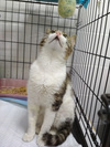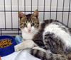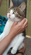 Явно был домашним, лоток знает, тянется к людям, но, наверное, долгое время провёл на улице, исхудал, и, на нём были ранки от драки с котами. Сам он производит впечатление совсем неконфликтного, и, скорее всего, его можно взять и в компанию к другому животному.