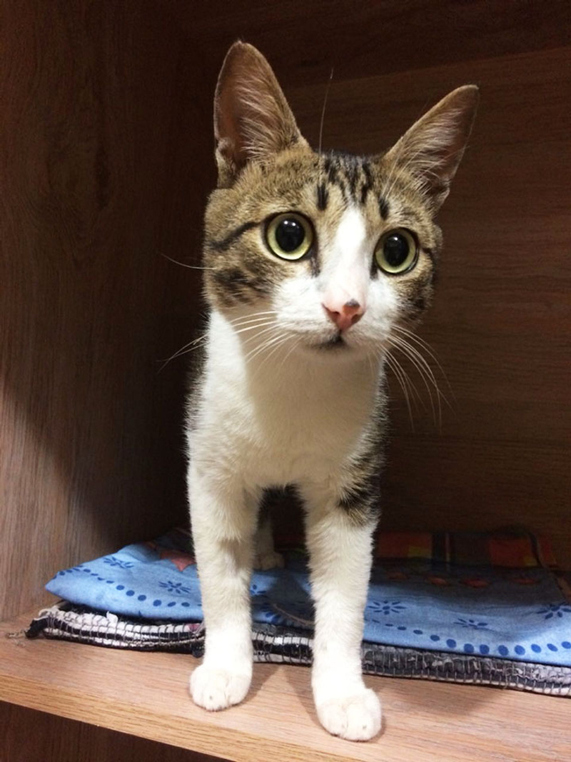 На фото он ещё не во всей красе - только найден, худой и грязный. Скоро будут новые фото чистого, похорошевшего Тимофея) Обратите внимание, какие глаза!