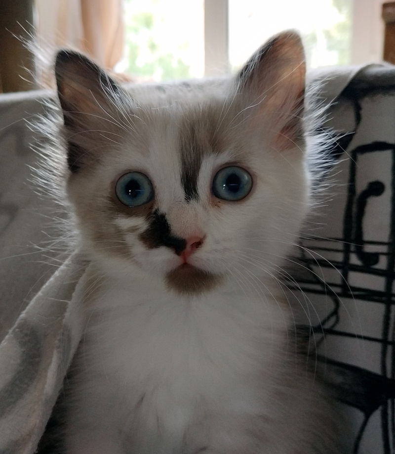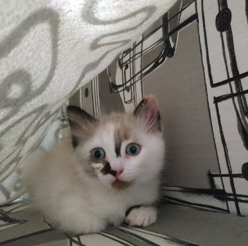 Возраст около 1.5 мес, она совершенно самостоятельная, все умеет и готова переехать в свою заботливую семью. Внешность неотразимая, голубые глазки, кремовое ушко, вся просто воздушная, маленькая прелесть, а не котенок. Играет игрушками, бегает наперегонки с братьями, беззаботное детство в самом разгаре.