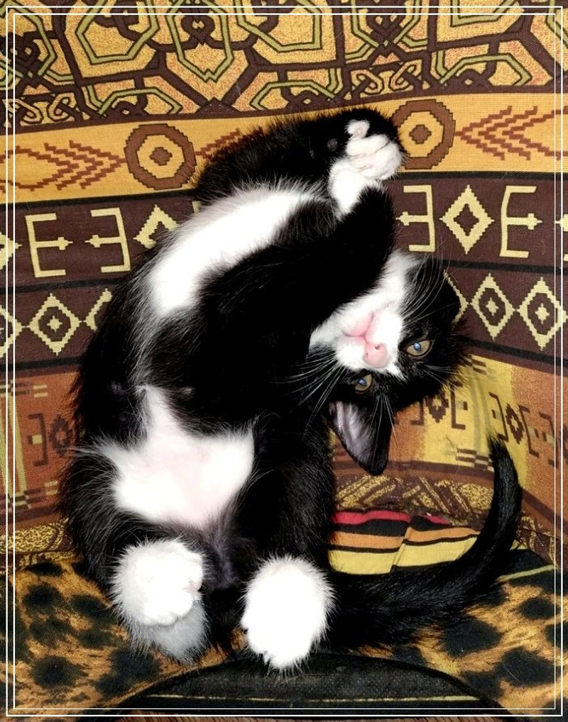 Предыстория- кошку маму выбросили хозяева, так как попав в капкан, она лишилась передней лапки и не могла ловить мышей, кошка скиталась и родила котят. Всю семью временно приютили. Мама в дальнейшем будет стерилизована и пристроена в добрые руки.