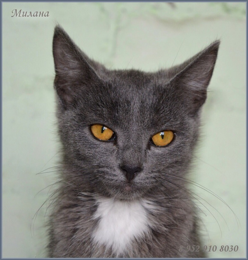 Малышке Милане 3-3,5 месяца, поэтому она, познав предательство, уже не по-детски серьезна и избирательна в общении. Вы можете растопить сердце Миланы, подарив ей всю свою любовь, либо наблюдать, как растет и становится красивыми крепким котом Митяй. Что для этого нужно? Взять ребёнка в семью и подарить теплый дом и ответственных хозяев.