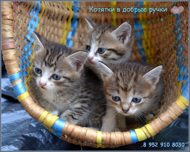 Котятки возрастом около 2х месяцев, два мальчика и девочка. Кушают сами, в лоточек стараются попадать