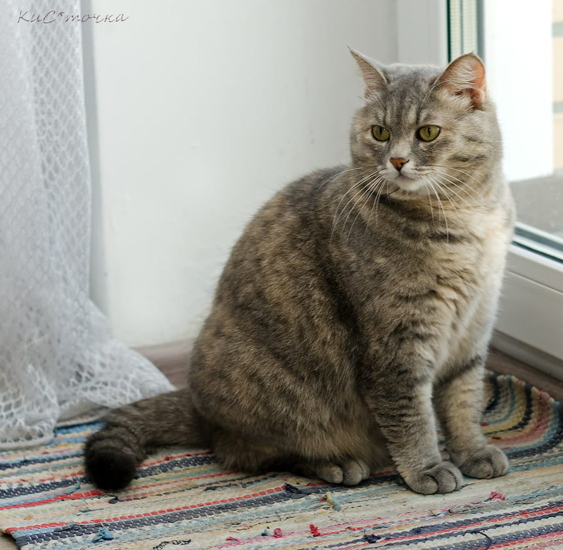 Малоигрива и малоподвижна. Ходит в лоток, но настоящим туалетом для нормальной кошки считает улицу.