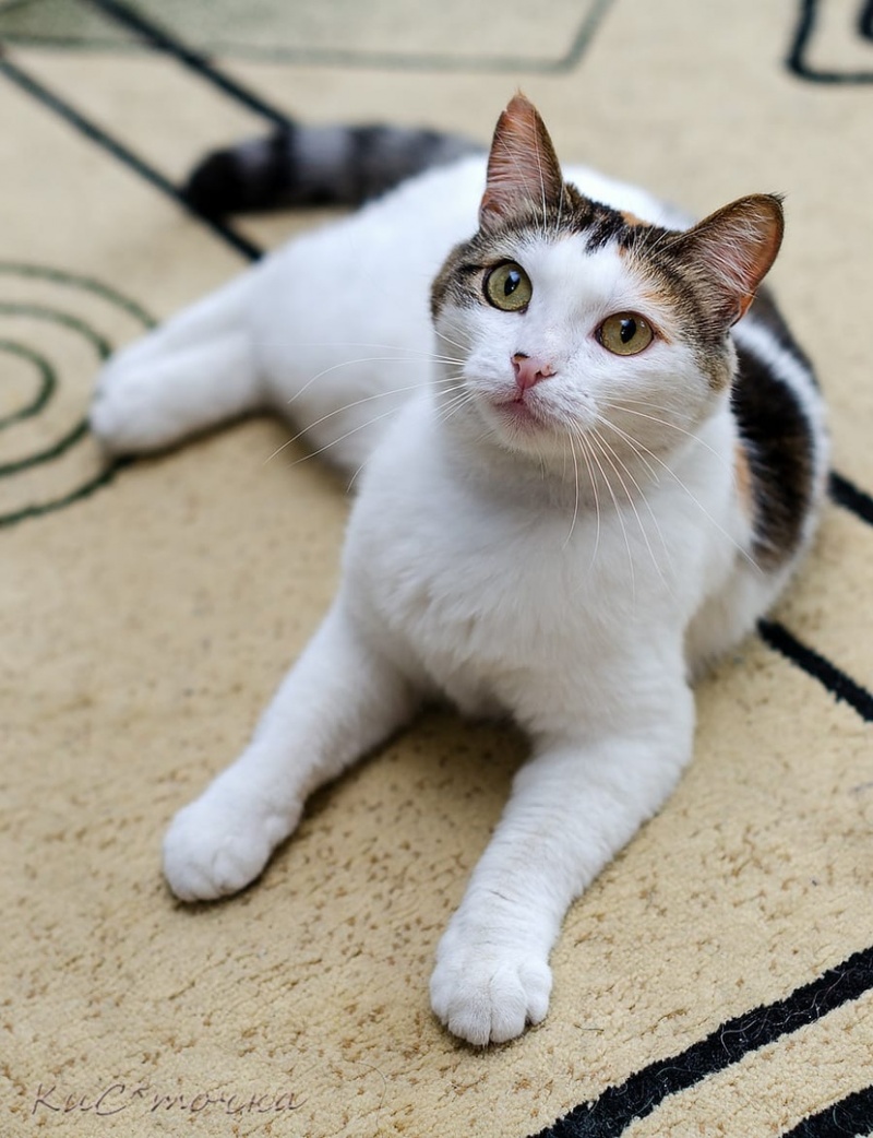 Мила-Людмила. Имечко мы ей поторопились дать. Нет-нет, она очень милая, ласковая, обожает людей, с удовольствием спит в ногах, по утрам приходит на поласкушки. Но больше ей подходит имя Оторва))) Ох уж и любит наша Мила-Оторва покуралесить! Если бы у неё были крылья, она бы летала и летала, она и сейчас летает, но не высоко, имеет повышенную прыгучесть, бегучесть и игручесть. Уигрывает всех своих друзей, те уже лежат и шелохнуться не могут, а Мила все фестивалит.