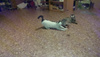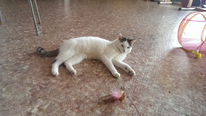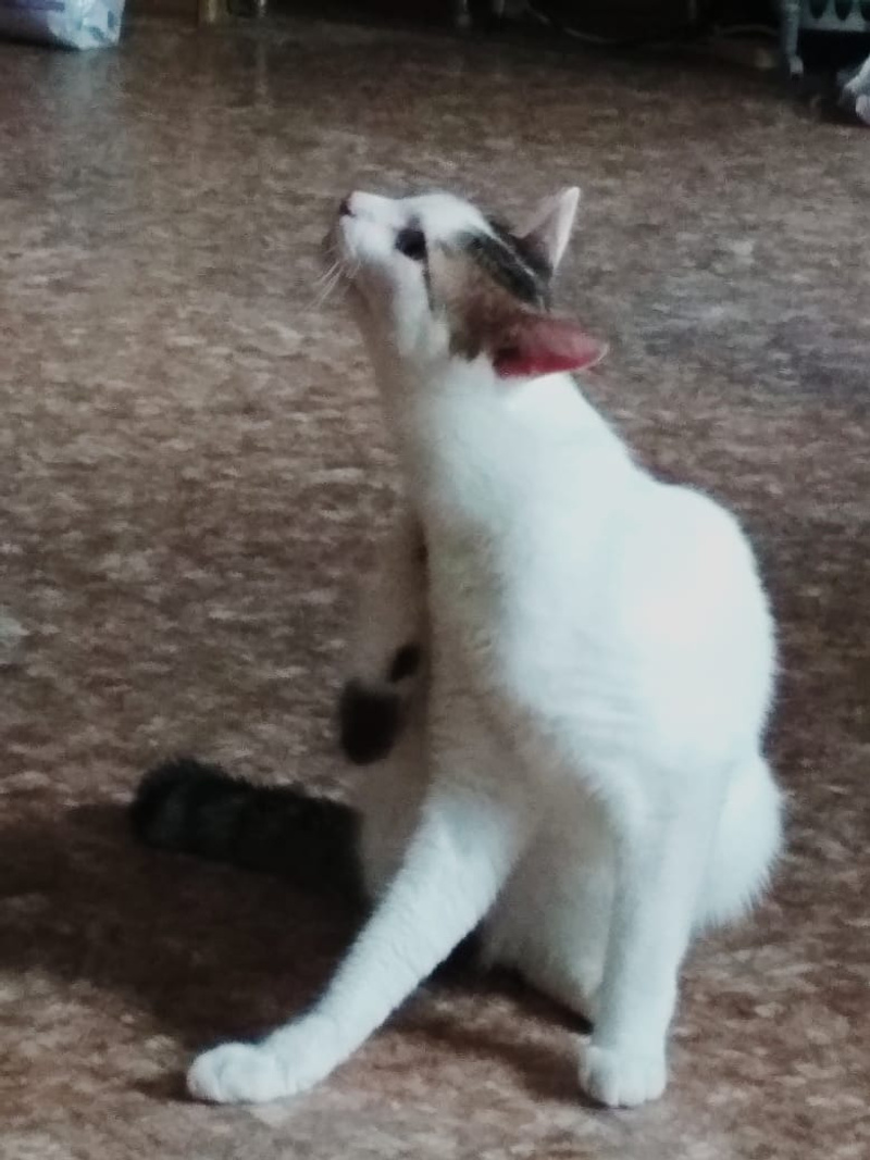 Прекрасно ладит с другими кошачьими, бодрит их, завлекает в игрища, не дает долго спать и толстеть!